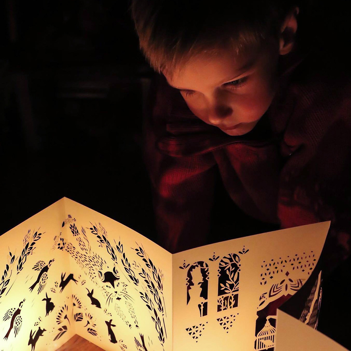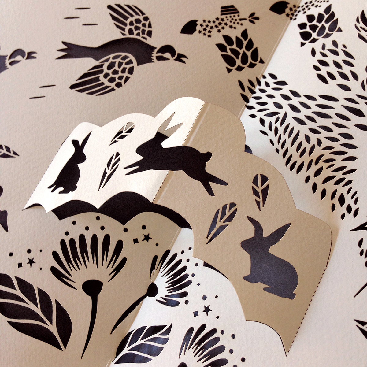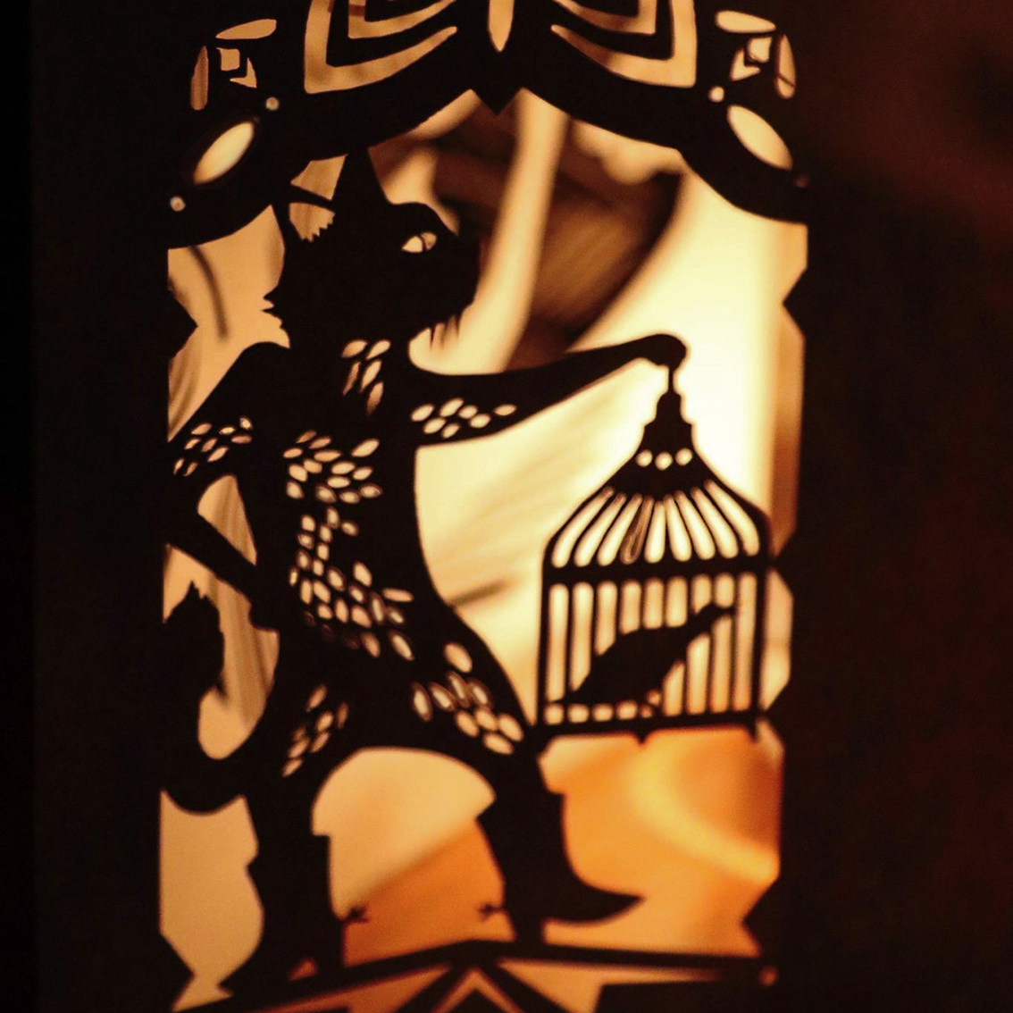 Livre-objet, illustrations en découpe sur papier d’art. Mise en image du conte Le Chat Botté de Charles Perrault. Différentes couleurs et textures de papiers Fedrigoni en fonction des tirages. — Leporello, façonné à la main, se déployant sur deux mètres. Couverture cartonnée et toilée avec une jaquette découpée. Format 21 x 21 cm. Fabriqué par Papiers Coupés à Nîmes. Parution novembre 2017. — « Coup de cœur » de La Revue des livres pour enfants, dossier Gilles Bachelet - Juin 2018, n° 301 publié par le Centre national de la littérature pour la jeunesse (BnF).