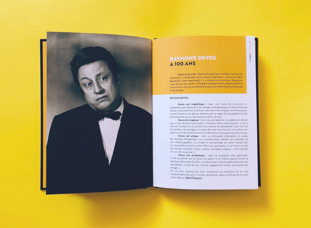 Création graphique de la pochette et maquette du livret 36 pages de la nouvelle édition coffret 3 DVD "DEVOS a 100 ans". Label Panthéon, 2022. Photos © Micheline Pelletier, Jacques Aubert