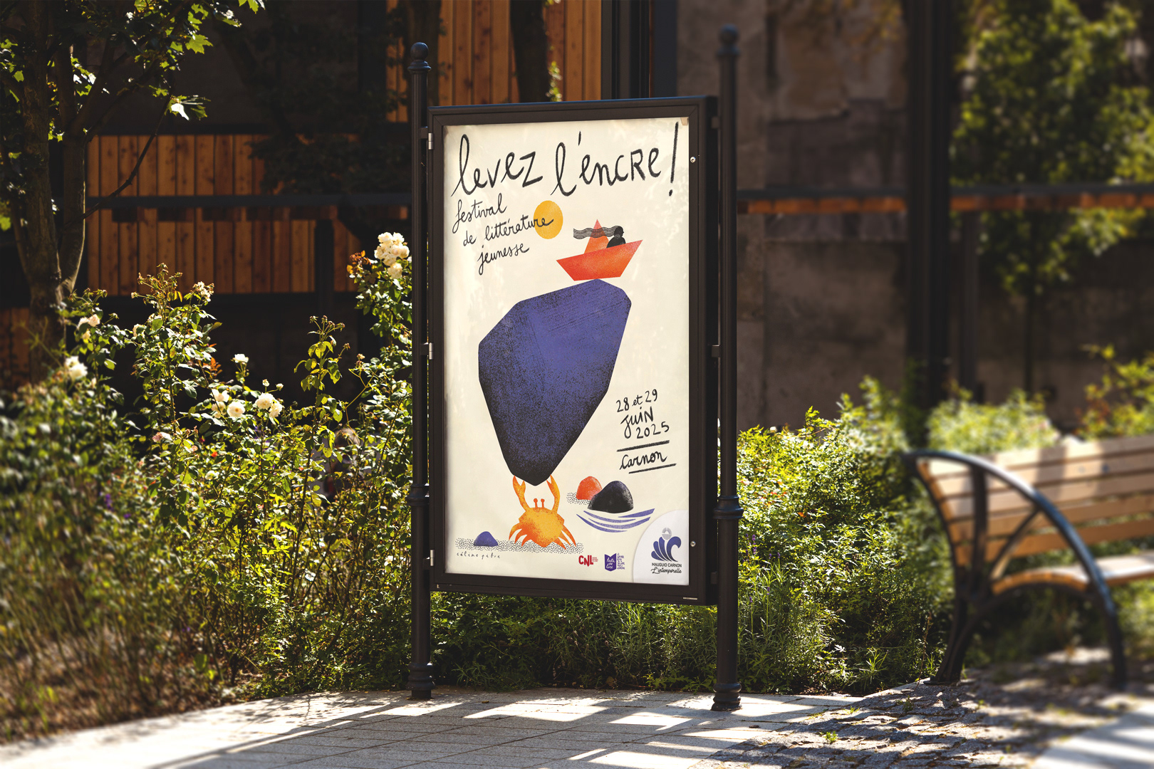 Illustration et graphisme pour l'affiche de la quatrième édition du festival de littérature jeunesse Levez L'encre ! de Carnon, 2025.