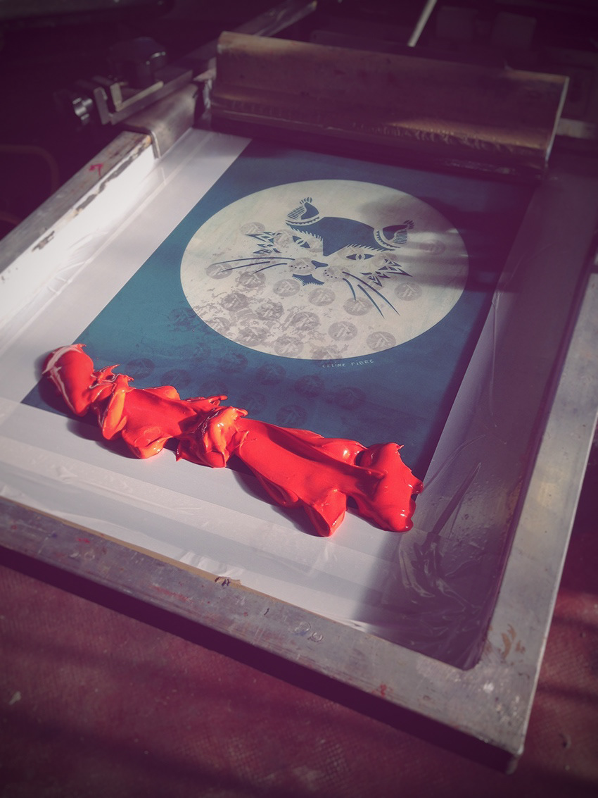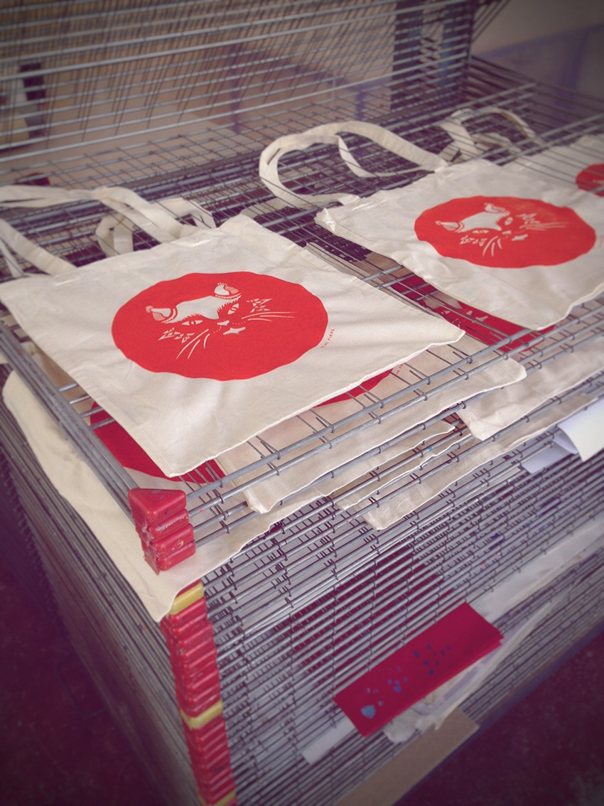 Sérigraphie textile avec encre à l’eau. 1 couleur sur sac en coton bio. — Série limitée sérigraphiée à l'atelier Intact, La Limonaderie, Lodève.